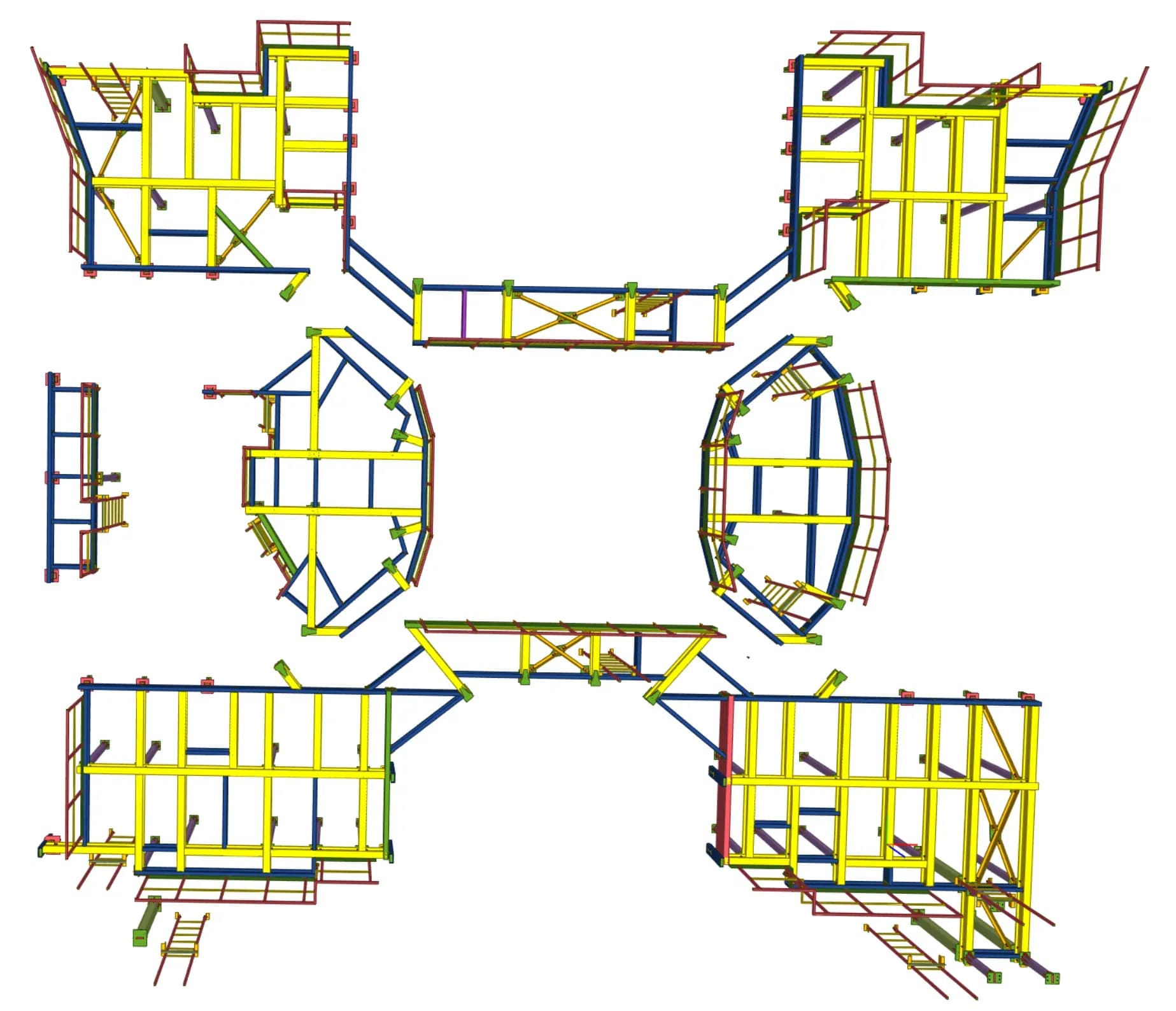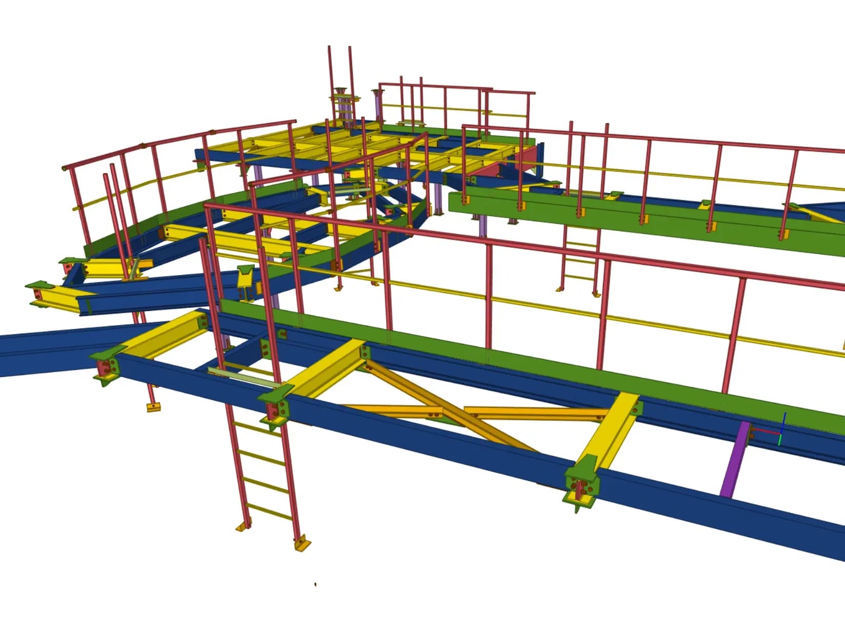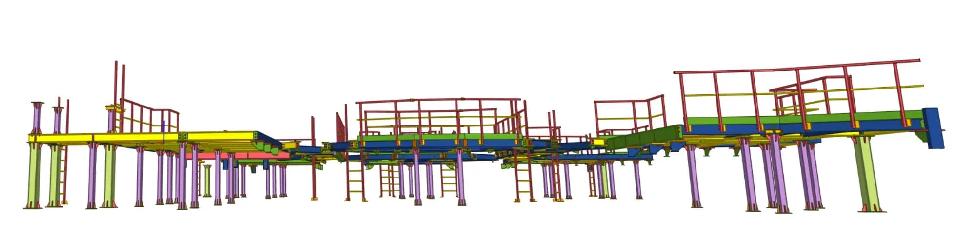 Basierend auf den gescannten Daten wurde ein vollständiges 3D-Modell des Bestands und aller relevanten Elemente erstellt. Diese Nachmodellierung war entscheidend, um die Bedienbühnen präzise in die bestehende Infrastruktur zu integrieren und mögliche Konflikte mit anderen baulichen Elementen frühzeitig zu identifizieren.