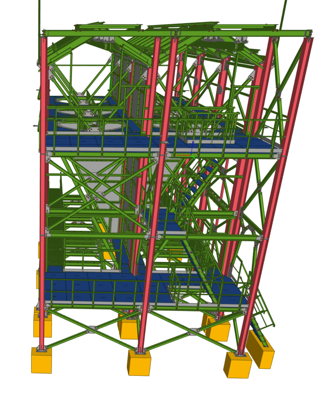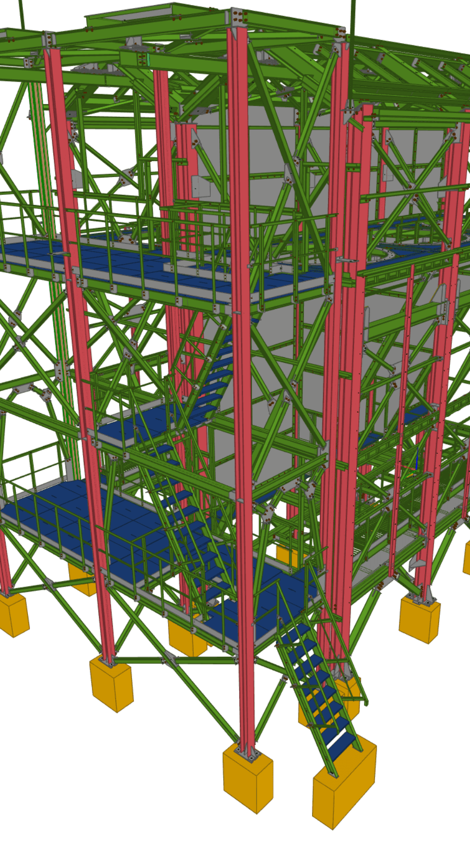In der Entwurfsphase wurden verschiedene Lösungsansätze für das Tragwerk des Stahlgebäudes erarbeitet und visualisiert. Ziel war es, ein wirtschaftliches, funktionales und ästhetisch ansprechendes Design zu entwickeln, das optimal auf die technischen Anforderungen des Kühlturms abgestimmt ist.