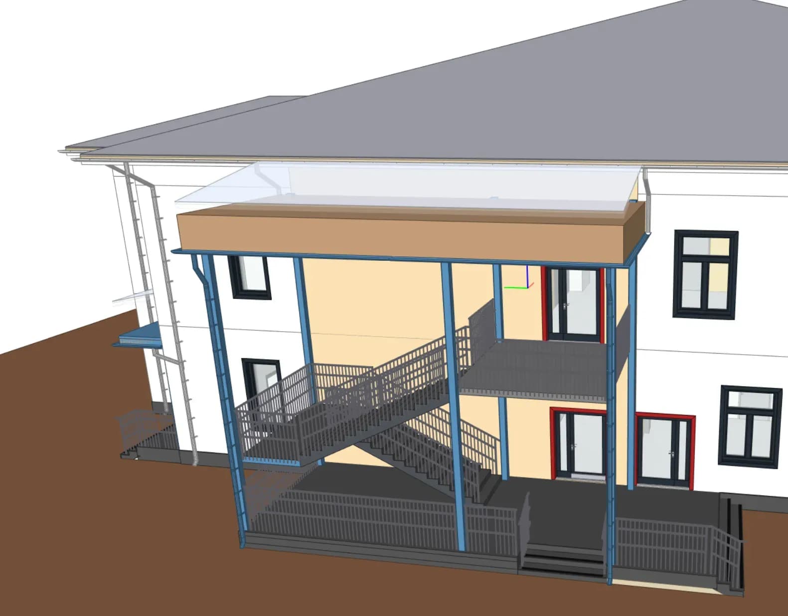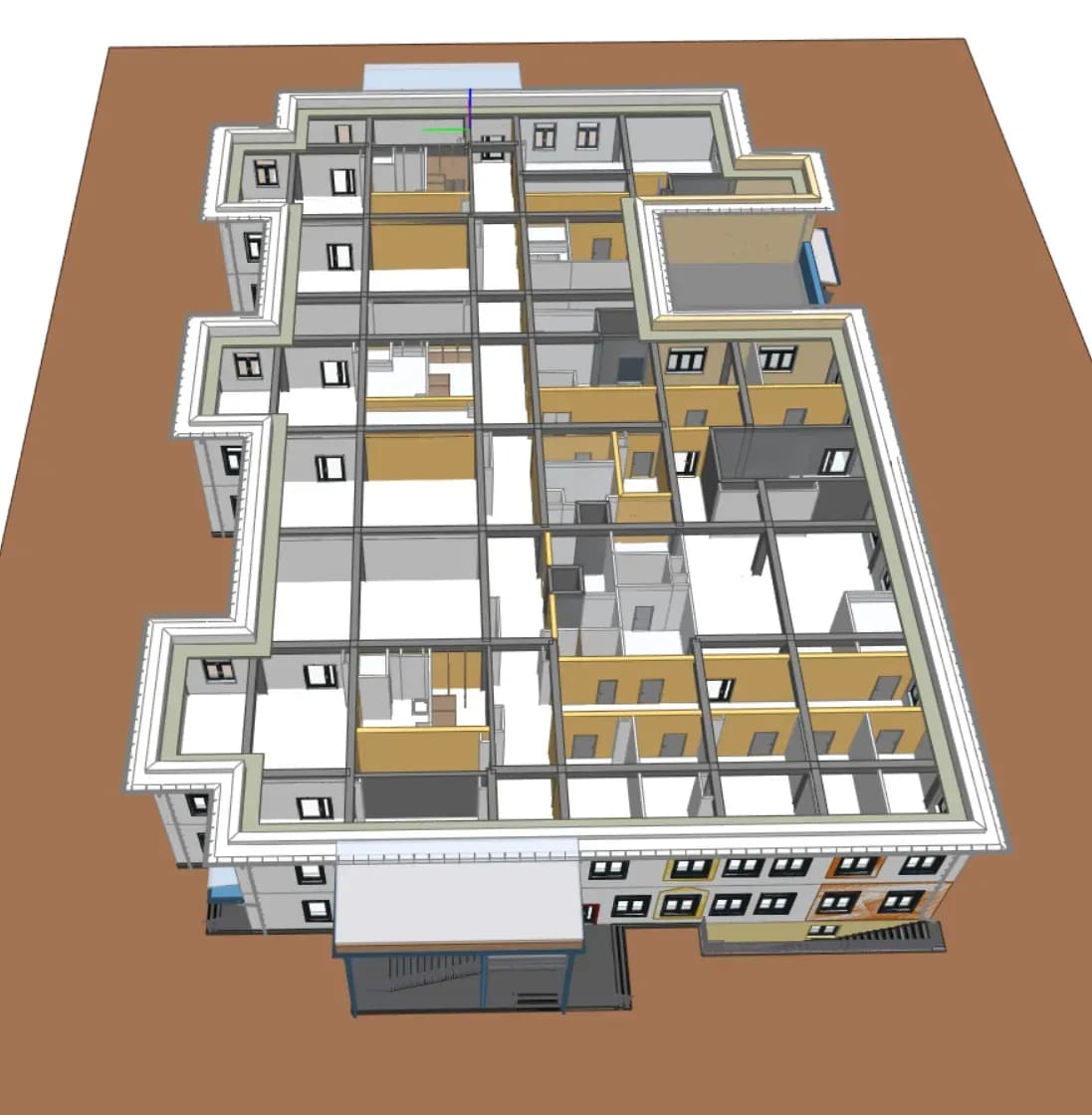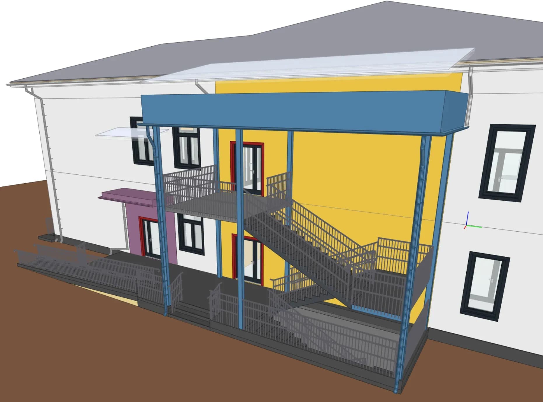 Ziel der Sanierung ist die Verbesserung der Gebäudesubstanz, die Steigerung der energetischen Effizienz und die Gewährleistung der Sicherheitsstandards für die Kindergartenkinder. Die Projektvorbereitung begann mit einer detaillierten Bestandsaufnahme des bestehenden Gebäudes, gefolgt von der Erstellung eines digitalen 3D-Modells als visuelle Grundlage für die Planungen. Anschließend wurde ein neues Modell entwickelt, das die geplanten Modernisierungen berücksichtigt, mit besonderem Fokus auf die statische Berechnung zur Gewährleistung der Tragfähigkeit. Die Erstellung von Instandsetzungs- und Ausführungsplänen sowie detaillierten Bauplänen schloss die Planungsphase ab, um eine professionelle Umsetzung der Sanierung zu ermöglichen.