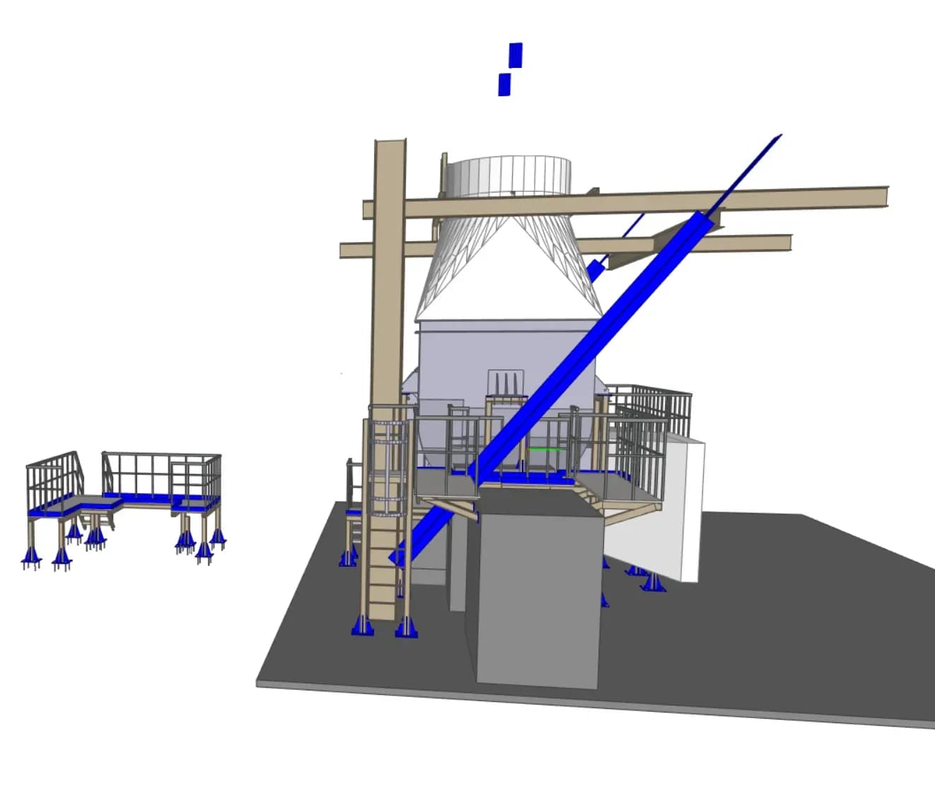 In dieser Phase wurden die technischen Anforderungen des Kraftwerks sowie die Bedingungen für die neue Rauchgasabsaugung analysiert. Besonderer Fokus lag auf der Integration in vorhandene Fundamente und Kanäle. Zusätzlich wurden Schnittstellen zu bestehenden Anlagen und betriebliche Abläufe berücksichtigt, um funktionale, sicherheitsrelevante und wirtschaftliche Ziele frühzeitig in die Planung einzubinden.