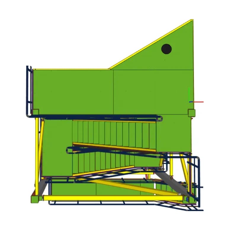 Im Rahmen eines Industrieprojekts im bayerischen Raum wurde von unserem Ingenieurbüro ein Treppenturm aus Stahl geplant. Die Stahlkonstruktion dient als Zugangslösung für verschiedene Ebenen eines Industriegebäudes und ermöglicht einen sicheren und effizienten Zugang für das Wartungspersonal und technische Inspektionen. Unser Leistungsumfang umfasste eine detaillierte Bestandsaufnahme der örtlichen Gegebenheiten, die Entwicklung eines präzisen digitalen Modells sowie die Durchführung statischer Berechnungen zur Gewährleistung der strukturellen Sicherheit. Zudem haben wir Werkstatt- und Montagepläne erstellt, die alle Anforderungen an Material, Verbindungen und Montagesequenzen berücksichtigen, um eine reibungslose Fertigung und Installation zu gewährleisten.